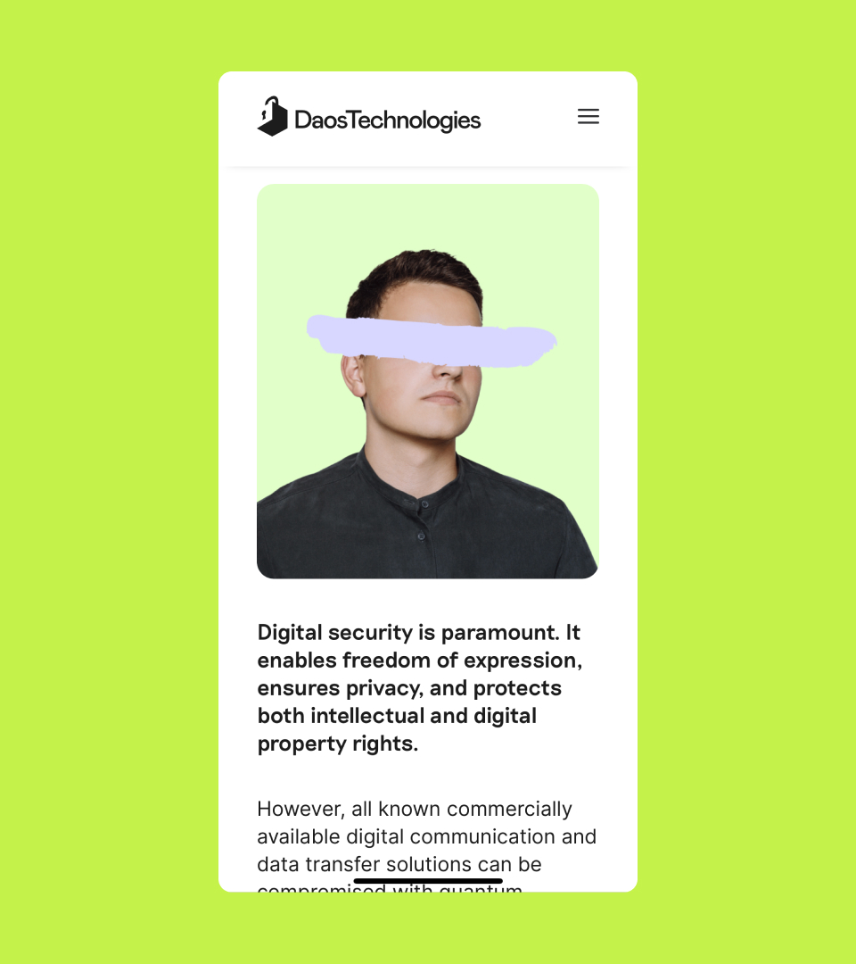 Daos Technologies Oy Ltd on vuonna 2022 perustettu suomalainen IT-/SaaS-alan yritys, joka kehittää korkean tason tietoturva- ja yksityisyydensuojaratkaisuja. Asiantuntijatiimillä (mm. Nokia, Linux, Puolustusvoimat) on vahva tausta kryptografiassa, algoritmeissa ja Zero Trust -teknologioissa. Yrityksen tavoitteena on tarjota täysin uuden tason verkkoturvallisuuden standardi.